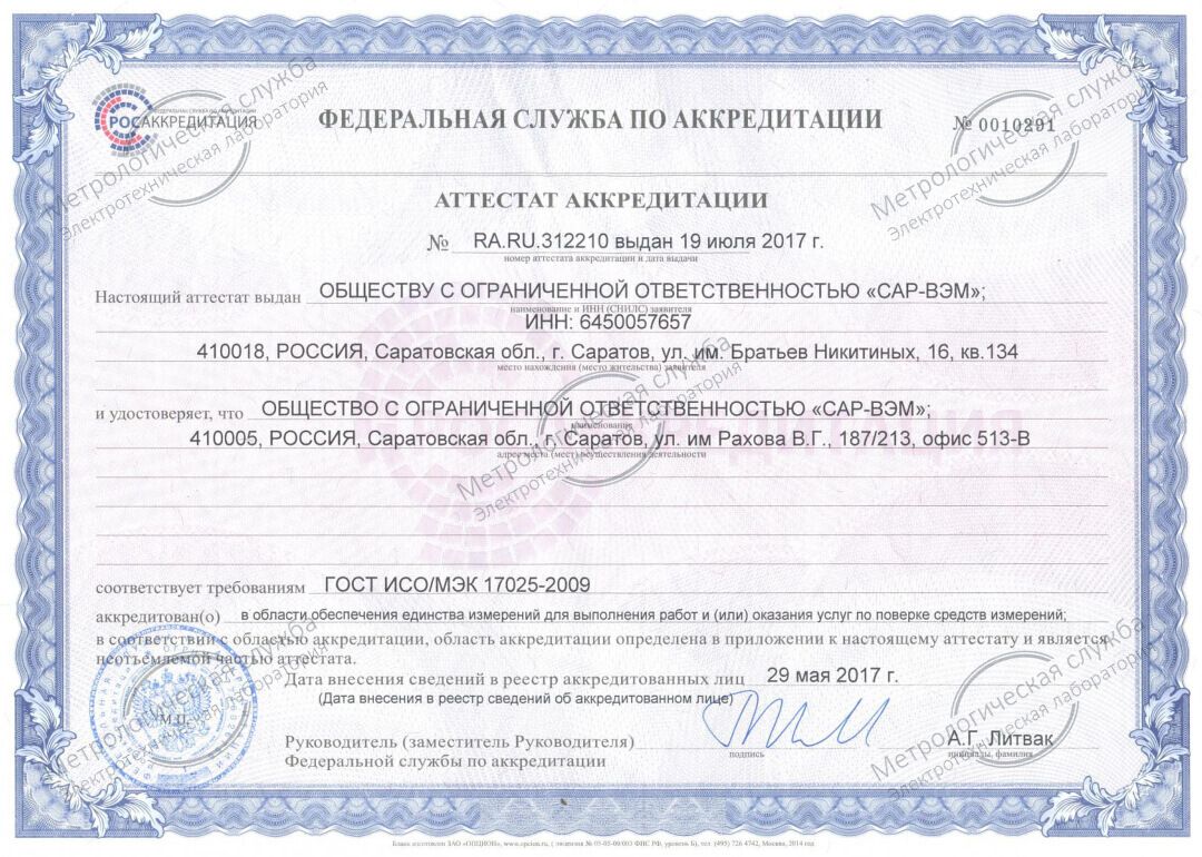 Основное направление нашей деятельности – поверка счетчиков учета воды на дому без снятия и нарушения целостности пломб. Мы имеем аттестат аккредитации в области метрологии на соответствие требованиям ГОСТ ИСО/МЭК 17025-2009 и производим поверку счетчиков холодной и горячей воды в соответствии с государственными стандартами и актуальными требованиями коммунального законодательства.